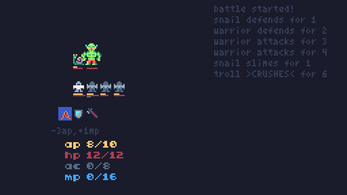 I missed the gameplay of playing a healer in old MMOs (EQ, WoW, etc.), then I needed a frame for the battles, then I wanted some more monsters, then... I had some unexpected time with an old laptop over the holidays... and here we are! I hope you enjoy! I've been able to win with all 4 classes, but let me know what you think, too easy? Too hard?